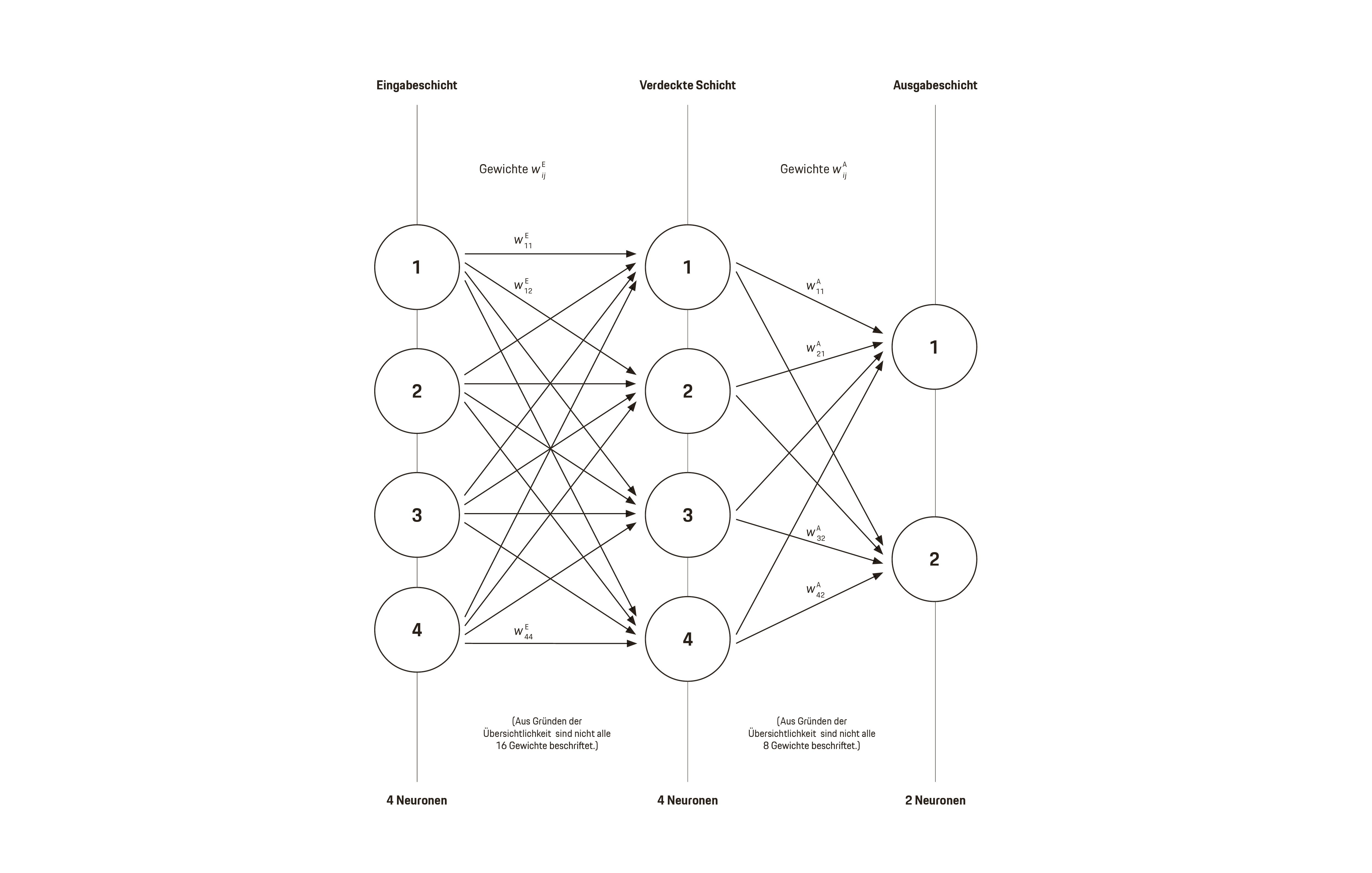 Natürliche und künstliche neuronale Netzwerke lernen durch Veränderungen der Stärke der synaptischen Verbindungen bzw. der Gewichtsfaktoren. In tiefen neuronalen Netzwerken legt man beim Training Daten an ihre Eingänge und vergleicht den Output mit einem gewünschten Ergebnis. Mithilfe mathematischer Verfahren werden die Gewichtsfaktoren wij so lange angepasst, bis das neuronale Netz beispielsweise Bilder zuverlässig in vorgegebene Kategorien einordnet. Beim Schließen legt man Daten an den Eingang und nutzt den Output zum Beispiel für Entscheidungen.
