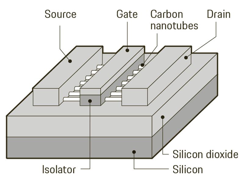 The search is therefore on for a successor to the transistor that will further increase the performance of electronic circuits in the future. IBM researcher Riel lists a whole range of MOSFET alternatives, including the carbon nanotube field-effect transistor (CNFET) and the tunnel FET (TFET). In the CNFET, current flows through tiny carbon tubes. This year, researchers from MIT have shown that the fast and energy-efficient switches can be produced in conventional chip factories. TFETs are similar in design to conventional transistors, but put the quantum mechanical tunnel effect to their advantage for switching. They are energy-saving and fast. Whether CNFET, TFET, or any other approach will win the race is completely open. “There is currently a lot of research, but no clear front-runner to succeed the optimized silicon MOSFET,” says Riel.