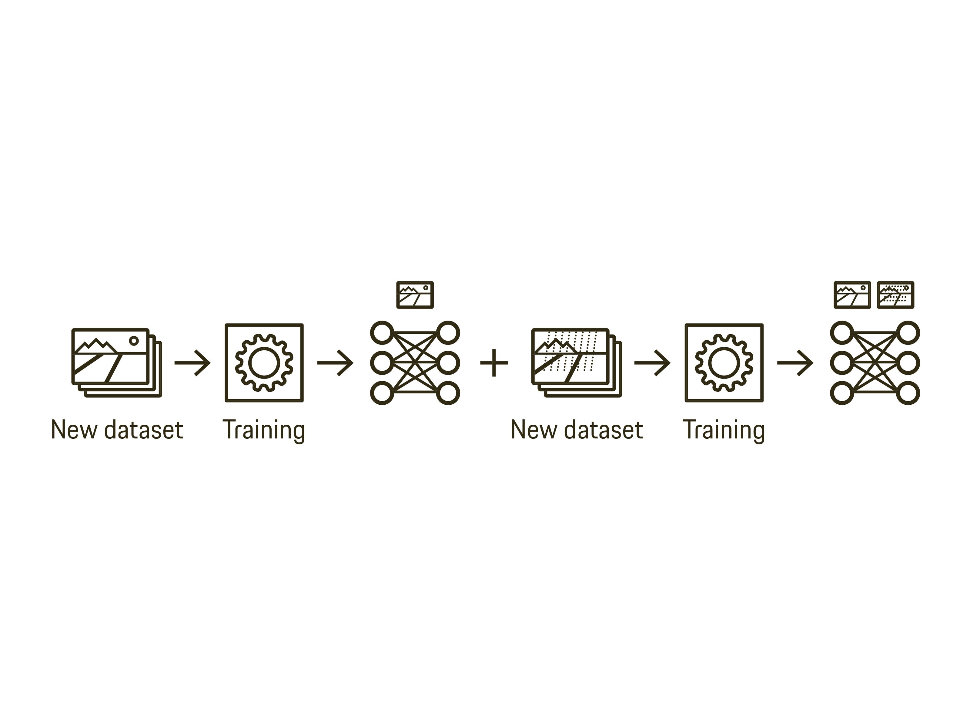 In all these cases, it has so far not been possible to teach the algorithm only the change, that is what in science is called the “delta.” In order to become familiar with the new domain, it again needs a complete dataset in which the modification occurs. It’s like a student having to go through the entire dictionary every time they learn a new word.
