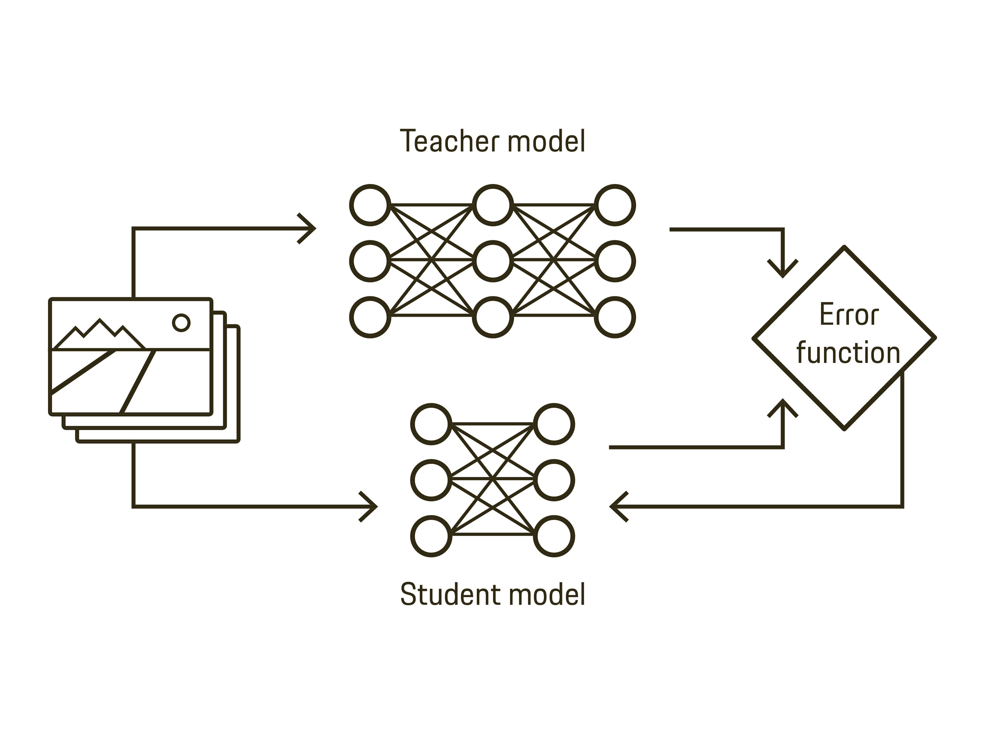 Another promising approach is for two perception AIs to train each other. First, a teacher model is built for this purpose: It receives training data in which a class of objects, for example signs, is marked. A second AI, the student model, also receives a dataset, but one in which other things are marked—trees, vehicles, roads. Then the teaching begins: The teacher system imparts its knowledge to the student as it learns new concepts. So it helps it recognize signs. After that, the student in turn becomes the teacher for the next system. This method, “knowledge distillation,” could save OEMs a lot of time in localizing their vehicles. If a model is to be introduced in a new market, all that needs to be done when training the autopilot is to use a different teacher model for the regional signs—everything else can stay the same.